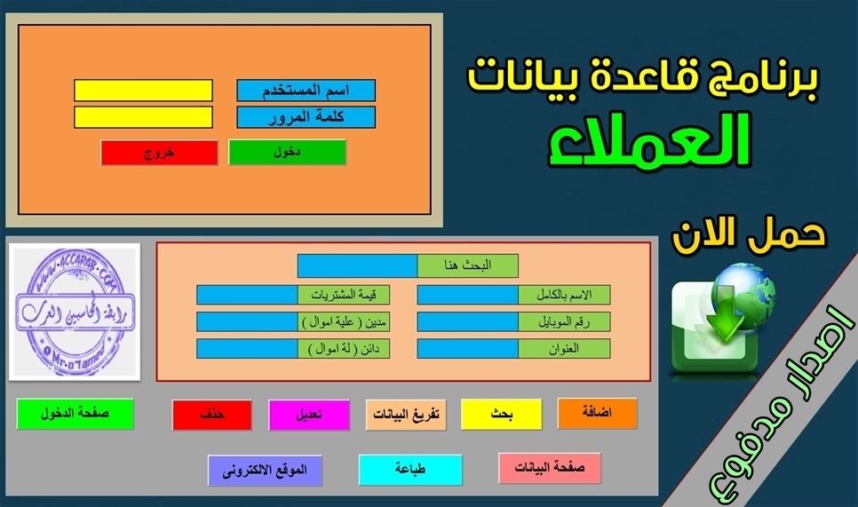 برنامج قاعدة بيانات عملاء احترافية على الاكسيل